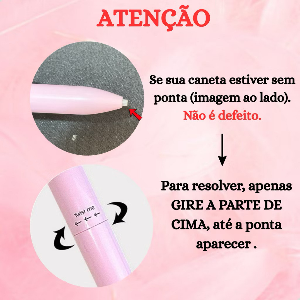 Tamanho: Caneta ~14,3 × 1,4 cm | Refill ~6 × 9,8 cm
