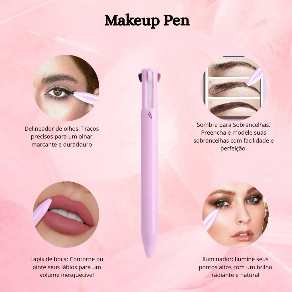 Simplifique sua rotina de beleza com a Caneta de Maquiagem 4 em 1, o item multifuncional que combina delineador de olhos, lápis de sobrancelha, lápis labial e iluminador em um único produto compacto, prático e indispensável. Ideal para quem ama estar sempre pronta — no dia a dia, no trabalho ou na bolsa para retoques rápidos.